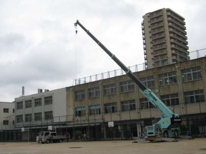 今日は屋上に室外機等を設置するために大型クレーンを使った工事が行われていました。