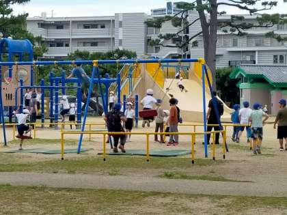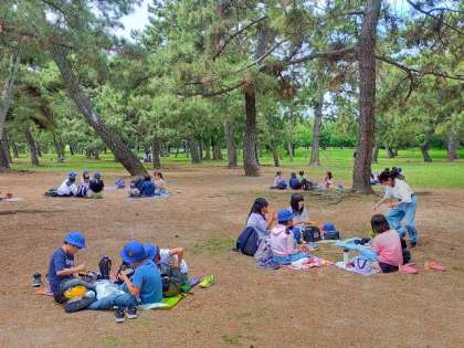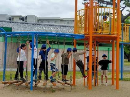 様々な種類の薔薇を堪能するうちに、おなかがすいてきました。待ちに待ったお弁当、そしてたくさんの遊具での遊び時間です。