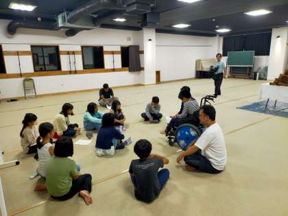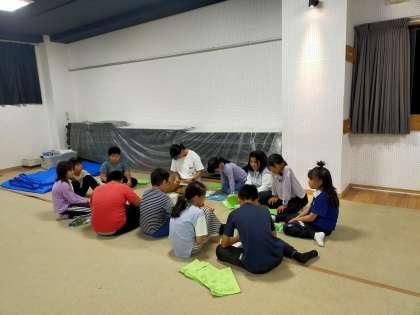 今日一日の出来事をグループで振り返り、その意見を持って、班長が集合しています。