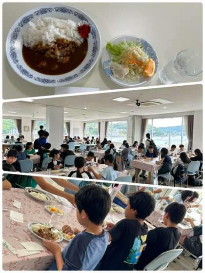 修学旅行最後の食事は、カレーライスです。みんなで楽しく食べました。
