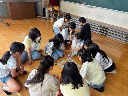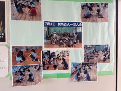 雨の多い梅雨の休み時間を利用して、高学年で百人一首の取組をしました。経験のある人もない人も興味がある人全員参加で楽しんでいました。