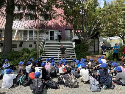 ハチ高原に着きました。大自然の中にあるお宿で泊まります。宿の方からは、クーラーのない中でたくさん学んでほしいというお言葉と「山のおきて」を教えてもらいました。しっかり守って充実した時間を過ごしましょう。