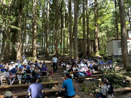 待ちに待った昼食は、森の中でお弁当です。木漏れ日が注ぐすてきな場所で美味しいお弁当をいただきました。