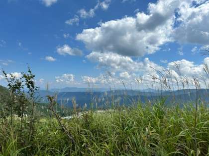 登山が始まりました。いち早く頂上をめざす人もいれば、一歩ずつ黙々と登る人もいます。30分もすると、みんな目標に向かって真剣に、励まし合いながら進みました。