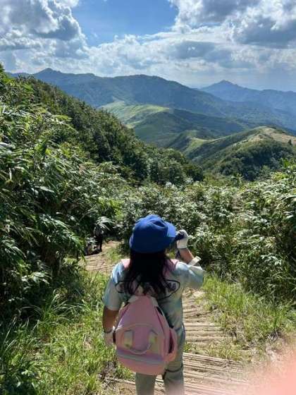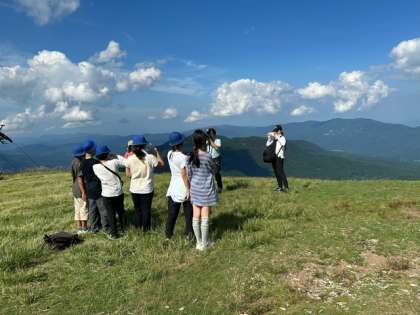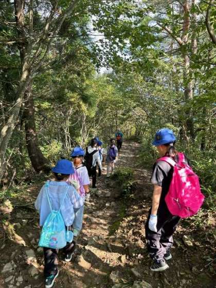 全員が山頂まで登りました。頂上に吹く風は気持ちよく満足感でいっぱいでした。やまびこも綺麗に聞こえ、トンボもたくさん飛んでいました。みんな頑張りました。