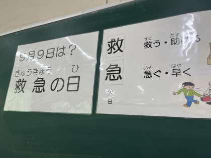1年生は、先日の発育測定の前に教室で保健室の先生からケガをしたときにできる「かさぶた」の秘密についてお話を聞きました。子どもたちは興味津々に聞き入っていました。また、救急の日についても知り、学校内で安全に過ごす大切さについて再確認をしました。
