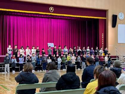 1年生は、生活科や国語科など学習で見つけたこと、考えたこと、感じたことを発表しました。「アイアイ」や英語の歌も素敵でした。1年間で大きく成長しましたね。