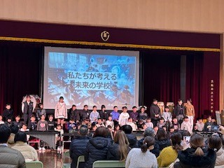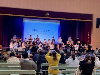 5年生は、総合的な学習の時間で取り組んだ「未来の学校」について、発表しました。「自分で学ぶ学校」や「動物とともにある学校」など、AIやVRの活用も想定し、よりよい未来について考えたことをしっかりとした語り、伝えていました。また、合唱「マイバラード」は美しく、合奏「キリマンジャロ」は勇壮に演奏しました。