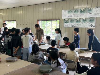 たくさんの信楽焼タヌキに迎えられ信楽に到着しました。いよいよ陶芸体験です。担当の方に実演しながら作り方を説明していただきました。みんな自分の作りたいものを思い浮かべながら熱心に聞き入りました。
