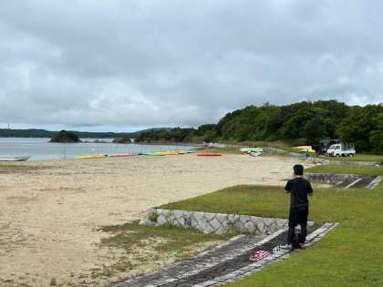 朝には、真っ白な霧がかかっていましたが、次第に視界も広がり、波も穏やかなため、シーカヤックができることとなりました。子ども達は大喜びです。