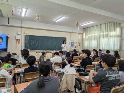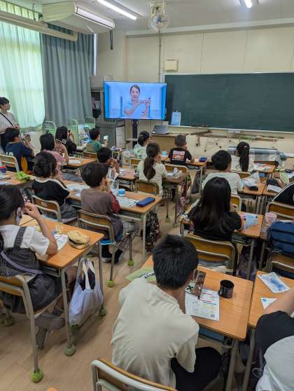 5年生を対象に、歯と口の健康について学び、その健康を維持する方法を通して、将来の夢の実現に向けて望ましい生活習慣を継続することの大切さを理解するため「全国小学生歯みがき大会」に参加しました。実習を通して歯肉炎予防のため、自分の歯並びにあわせた歯のみがき方やデンタルフロスの使い方を学びました。
