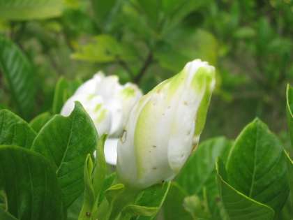 三先山のふもとに植えたクチナシが咲き始めました。
