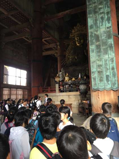 無事三先小学校へ帰ってきました。東大寺では、大仏の大きさに驚いたり、奈良公園の鹿の多さに驚いたりと楽しみながら回ることができました。