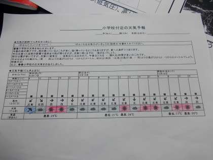 授業後のアンケートには、「わかりやすく天気のことを伝えるのはむずかしそうだ。」「天気は生活ですごく大切だということがわかった。」「天気予報はいろいろな情報をもとに行われていることがよくわかった。」などの感想を書いていました。