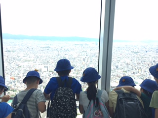 あべのハルカスでは、大阪市の様子を展望台から眺め、行ったことがあるところを見つけたり、自分の住んでいるところがどの方向にあるのかを探したりしました。