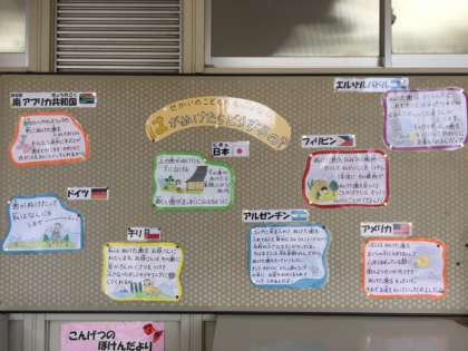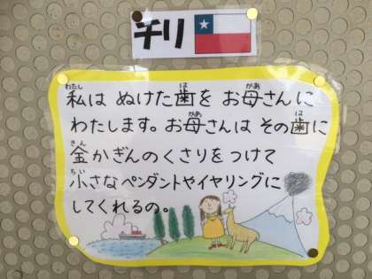 保健室の掲示物には、世界のこどもたちは歯が抜けたらどうするのか