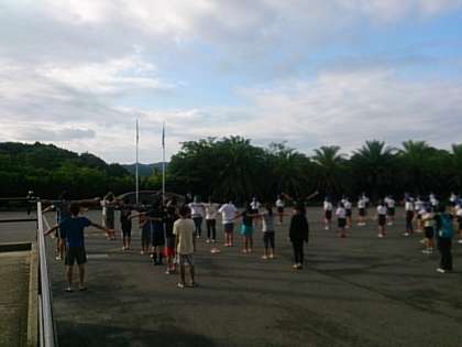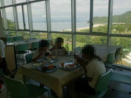 朝のつどいを終え、バイキングの朝食です。全員元気です。