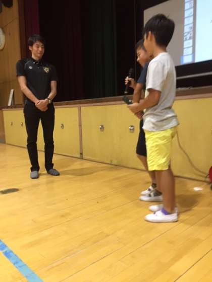 ○今日は入江選手が三先小学校に来てくれました。ドキドキしました。