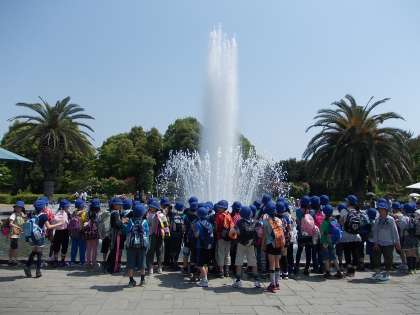 春の遠足で須磨離宮公園に行きました。班で協力してアスレチックを楽しみました。