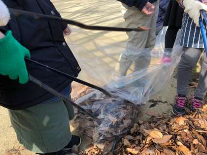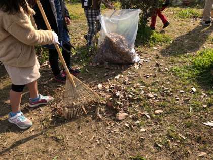 あまり落ち葉がありませんが、子どもたちは少しでもきれいにしようととれも一生懸命ゴミや落ち葉を拾っていました。