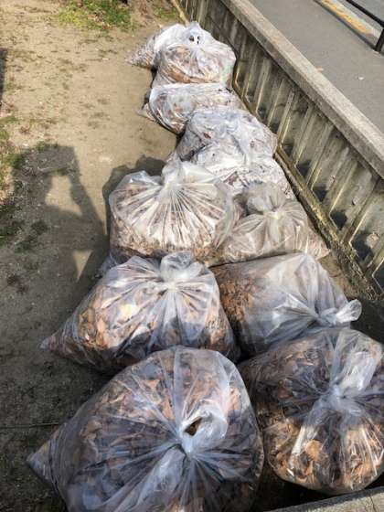 30分間掃除した結果、ゴミ捨て場にはゴミ袋でたくさんになりました。