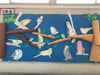 図画工作「よくみてかこう」の単元で、「イロトリドリノトリ」をかきました。