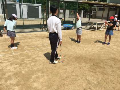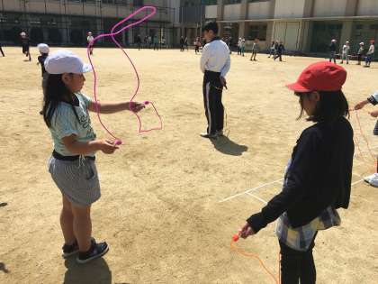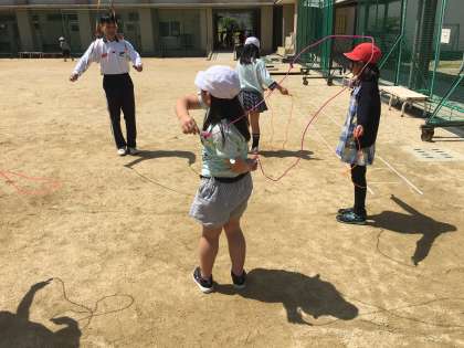 20分休憩に、数人の子どもたちと集まってなわとびをしました。今日は返し跳びにチャレンジしました。なわの操作の仕方やコツを分かりやすく、丁寧に教えてくれました。子どもたちは、笑顔で楽しそうに遊んでいました。これからもっともっとたくさんの子どもたちと、「なわとび」で遊べたらいいなと思います。