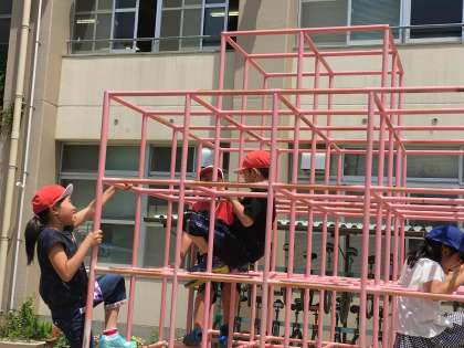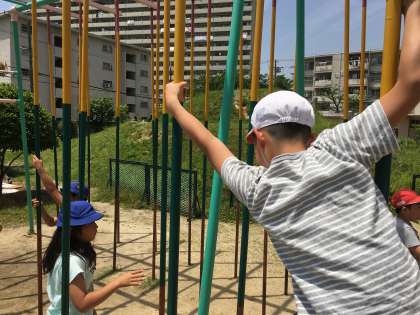 今日は、上り棒やジャングルジム、うんていに集まって遊びました。昼休みには、クラスみんなでドッジボールをして遊びました。