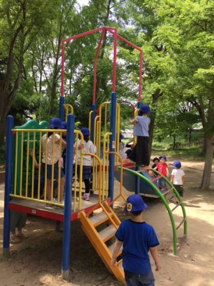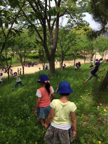 緑豊かな天保山公園で、思う存分走り回って遊びました。汗びっしょりです。