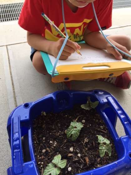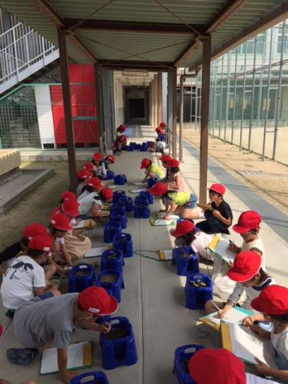 あさがおの芽が出ました。芽が出てうれしいですね。