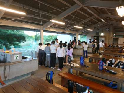 野外炊飯の後片付けしています。かまどは来た時以上にきれいなりました。