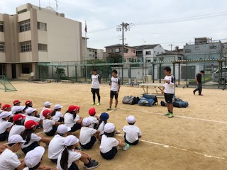 本日の2,3時間目に、セレッソ大阪から3名のコーチに来ていただいてサッカーを教えてもらいました。