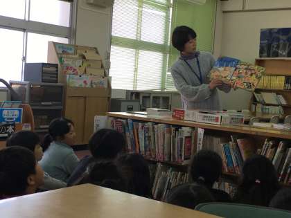 先日、読み聞かせをしていただきました。「大阪」に関係する本でした。また、新しい本の紹介もしていただきました。