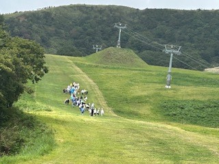 集団になって登り、途中で先に着いた人が、「がんばれー!」と励ます声が、何度も広い高原に響いていました。