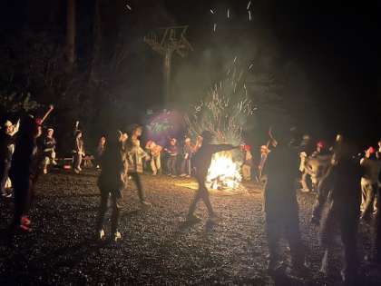 昨夜は雨もあがり、キャンプファイヤーで盛り上がりました。