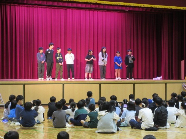 児童朝会では毎週木曜日に集会委員会が計画した「たてわり遊び」や委員会の発表などを行っていきます。