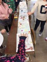 すごろくを作りました。「学校すごろく」「おばけやしきすごろく」等ストーリーにそ...