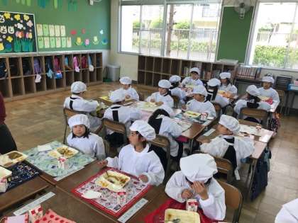 1年生は、初めての給食でした。