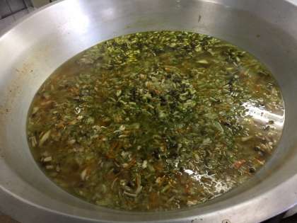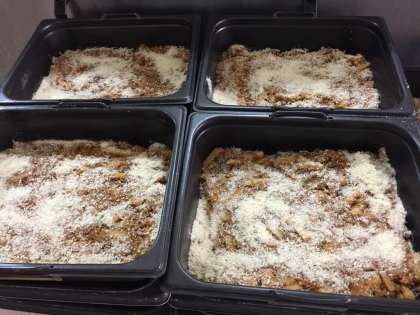 じゃがいものミートグラタン、スープ、きゅうりのピクルス、食パン、アプリコットジャム、牛乳