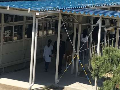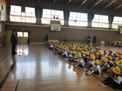 地震を想定して、避難訓練を行い、そのあとに保護者への引き渡しを行いました。