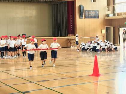 3年生は、団体競技の練習を行いました。台風の目をみんなで協力してがんばりました。