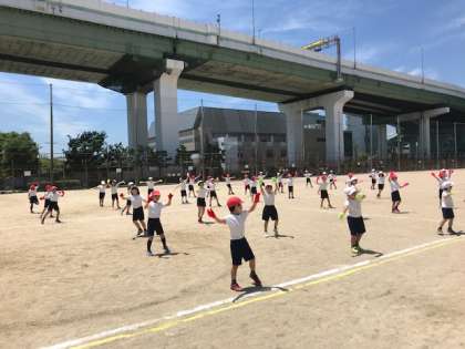 八幡屋公園の多目的グランドで、2年生がダンスの練習をしました。