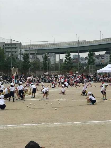 1年生は玉入れ、2年生はかけっこ、3年生は台風の目の様子です。