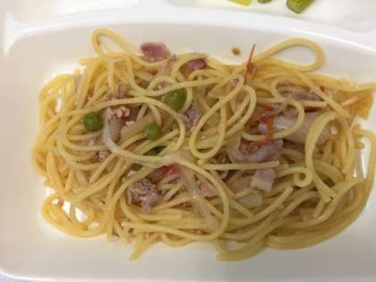 ポークトマトスパゲッティです。みなさんも作ってみてくださいね!