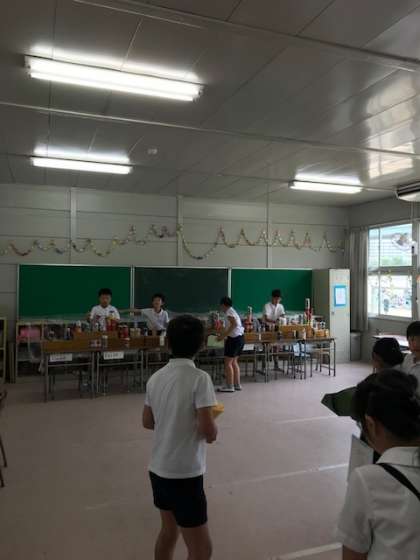 4年生のお店は、クイズをといて犯人をさがせとカンたおしです。
