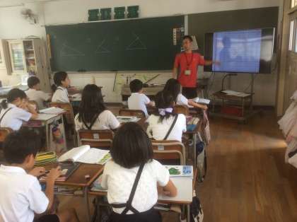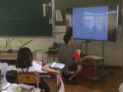 1時間目に、5年1組で書画カメラを使った算数の学習を行いました。