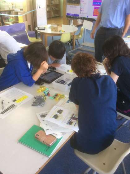 タブレットにインストールしたアプリでプログラムを組み、センサーも活用して、光や音を制御する内容でした。