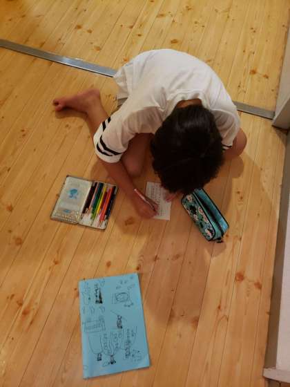 今日あった出来事を書いて、明日の朝にポストへ入れます。楽しかった1日、いろんなことを思い出して子どもたちは熱心に書いていました。