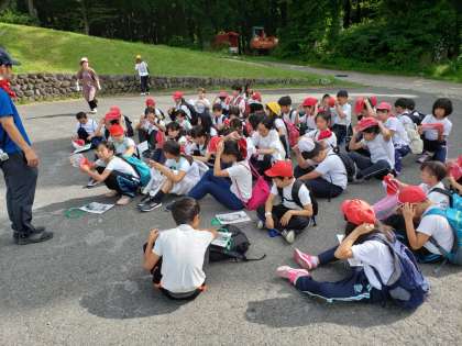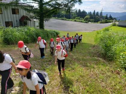 二日目朝はオリエンテーリングです。日陰は涼しいですが、日差しは大変強いです。スタート地点まで移動します。