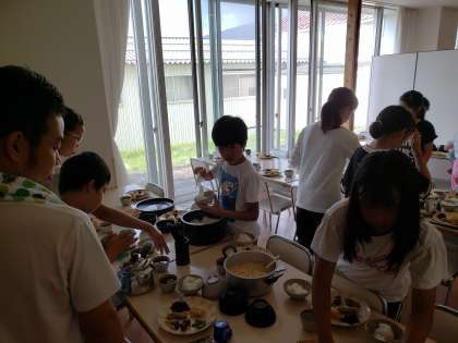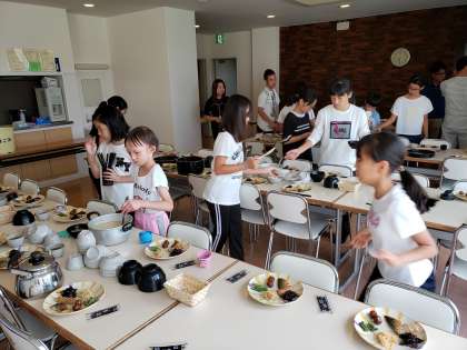 宿舎で食べる最後の朝食。協力して準備をすすめました。